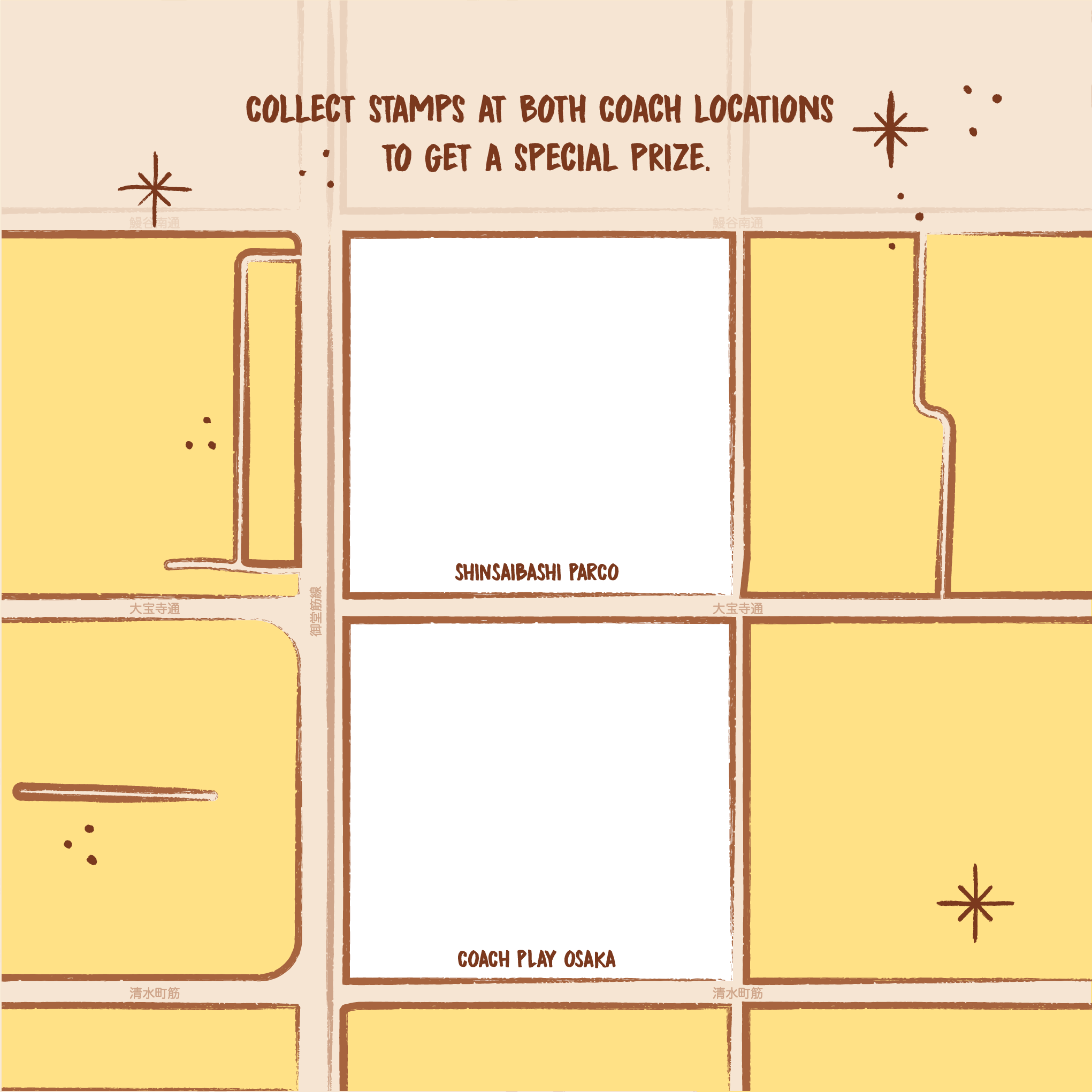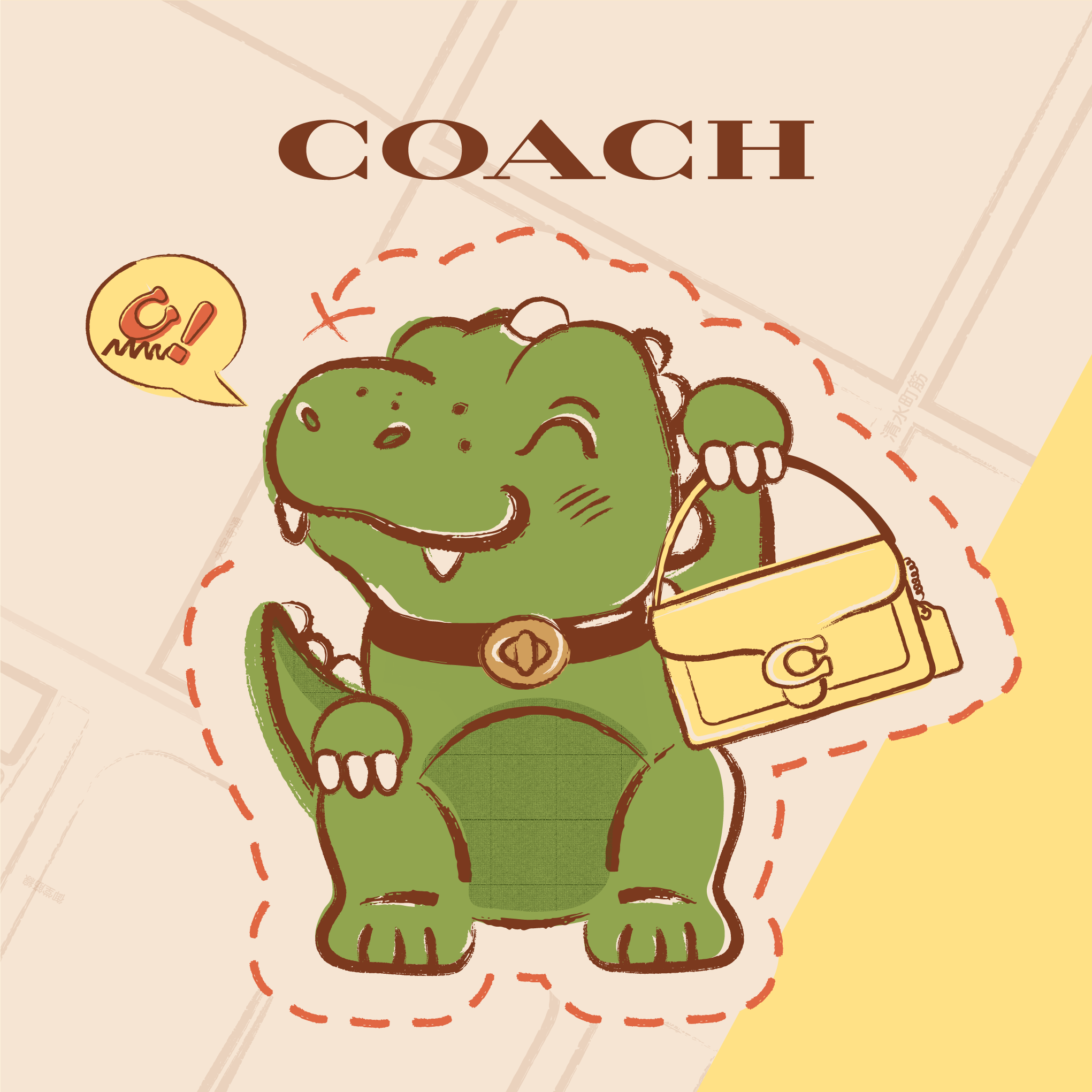Created animated key visuals, cartoon-inspired layouts, and interactive Stamp Hunt elements for Coach Play Osaka, bringing mascot Rexy to life in an immersive retail experienc